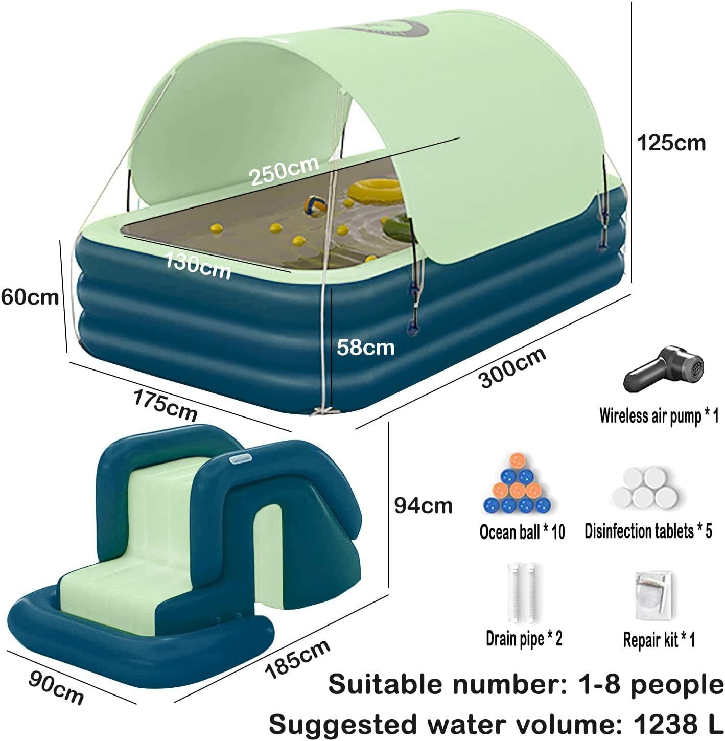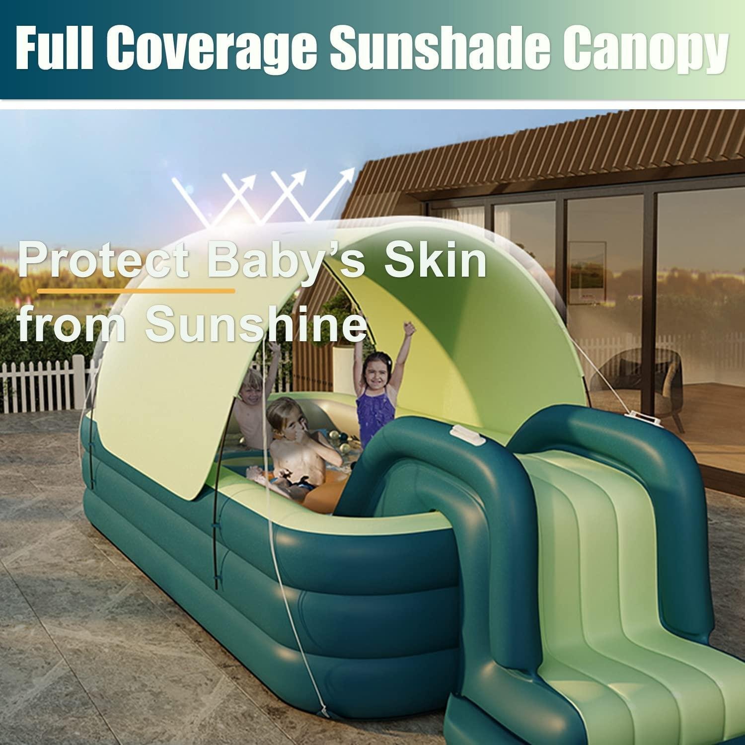 YUEWO Inflatable Swimming Pool with Canopy Above Ground Portable Pool for Baby, Kids, Adults Blow Up Pool for Family Garden Backyard (Green,3m/3Layers)