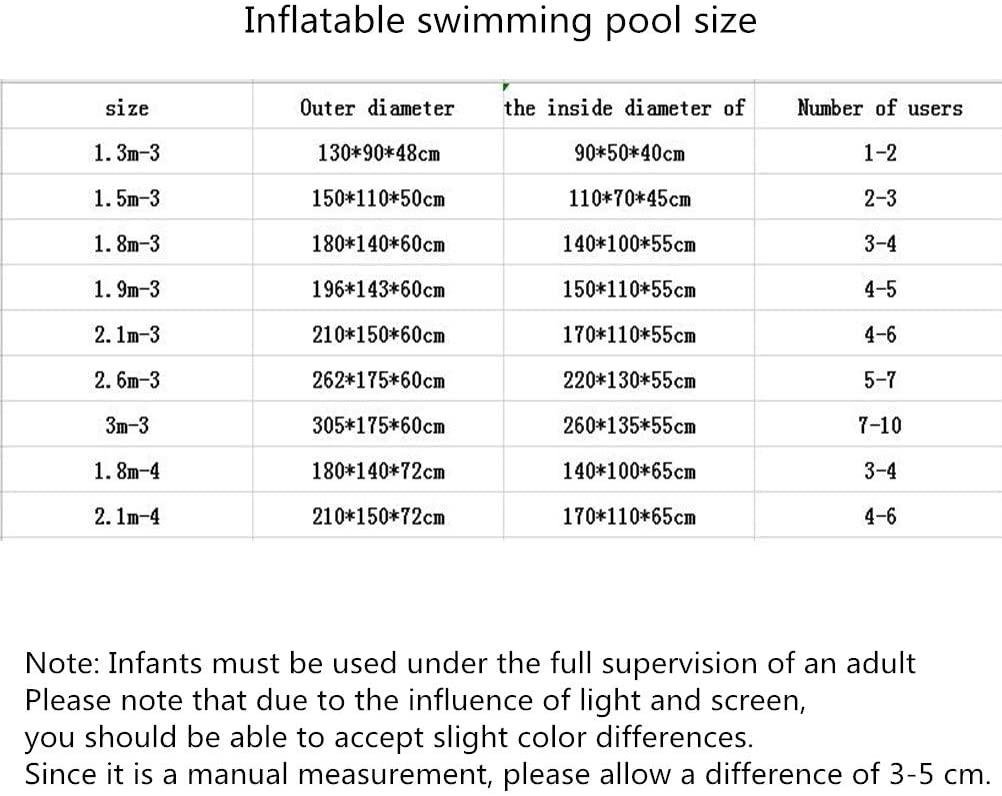 - ·Middle concave waist + wear-resistant bubble bottom: the concave waist design on both sides of the inflatable swimming pool effectively avoids the deformation caused by the excessive water pressure, allowing children to feel more comfortable in summer