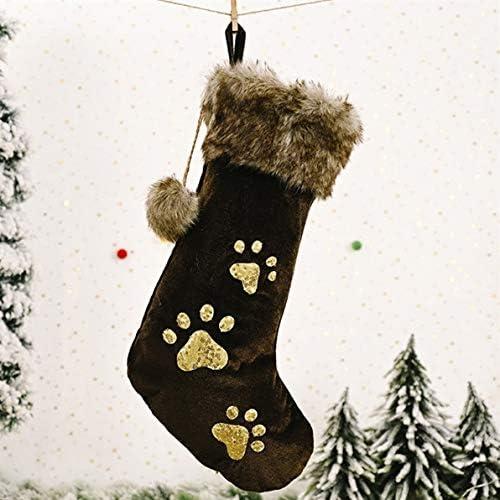 ZMDZA 2PS Decor Christmas Stockings Pet Dog Stocking Paw Christmas Socks Bags Fireplace Decoration Chimneys Cane