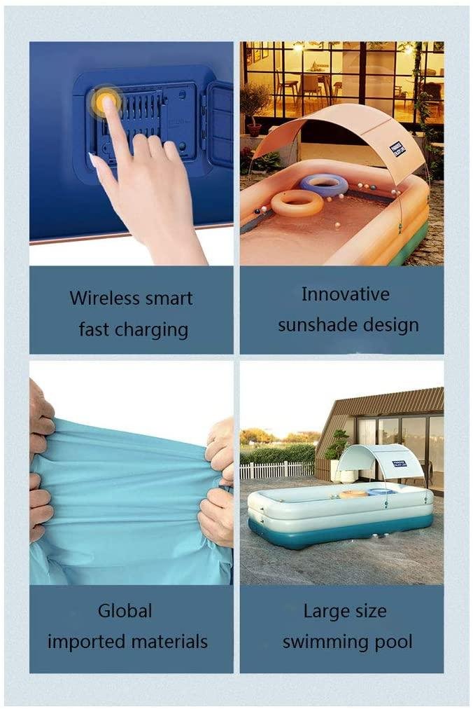 BTONG Family Above-Ground Swimming Pool, One-Button Automatic Inflation, No Air Pump Required, with Awning, Simple Backyard Setting, Adult Summer Water Party, Suitable for Backyard/Terrace/Beach